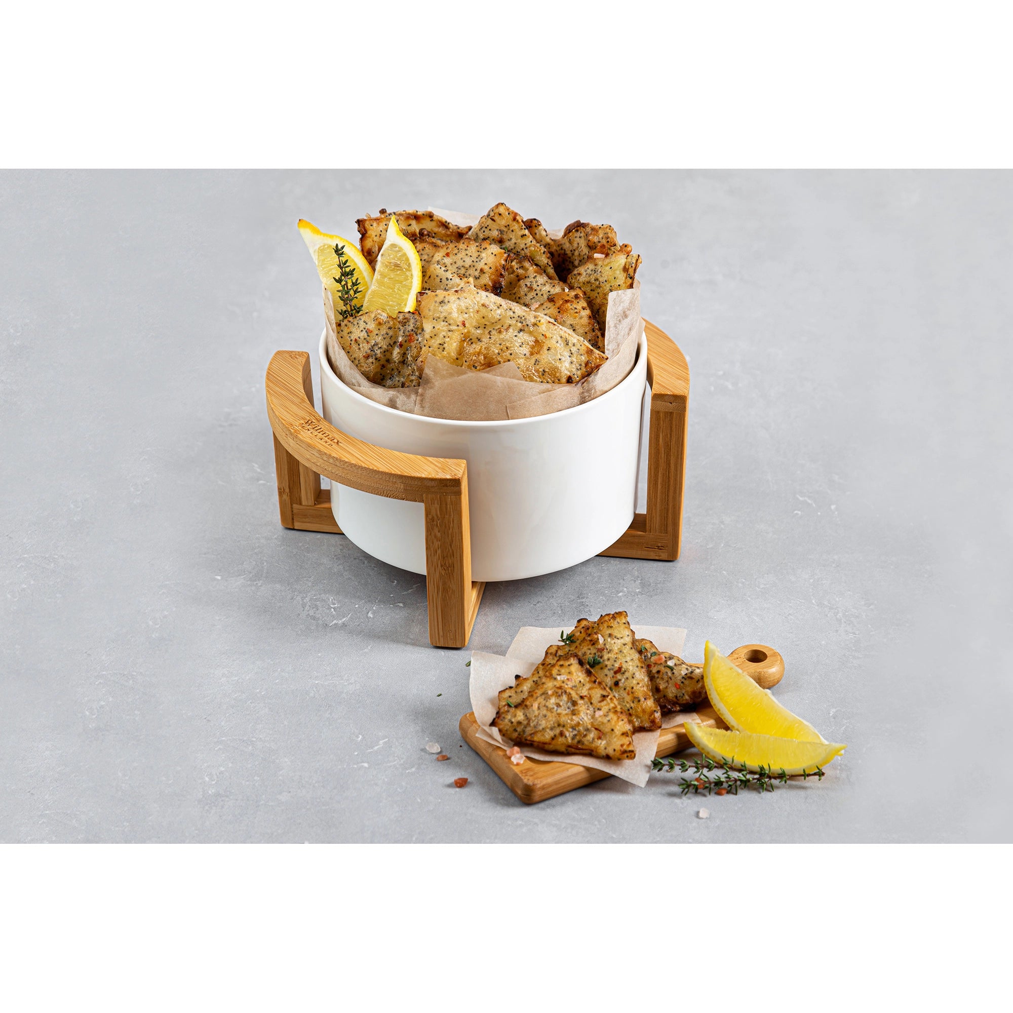 Hergestellt aus feinem weißen Porzellan, besticht diese Schüssel durch ihre zeitlose Eleganz. Das Material ist besonders widerstandsfähig gegen Abrieb, behält seine strahlend weiße Farbe über die Jahre hinweg und ist für den Einsatz in Spülmaschinen, Mikrowellen und Backöfen geeignet.