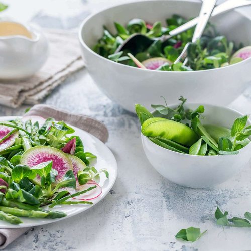 Das hochwertige Porzellan ist besonders langlebig und beständig gegen Kratzer und Verfärbungen. Es bleibt auch nach häufigem Gebrauch und Spülen in der Spülmaschine strahlend weiß. Zudem ist die Schale mikrowellen- und ofengeeignet, sodass Speisen direkt darin erwärmt werden können.