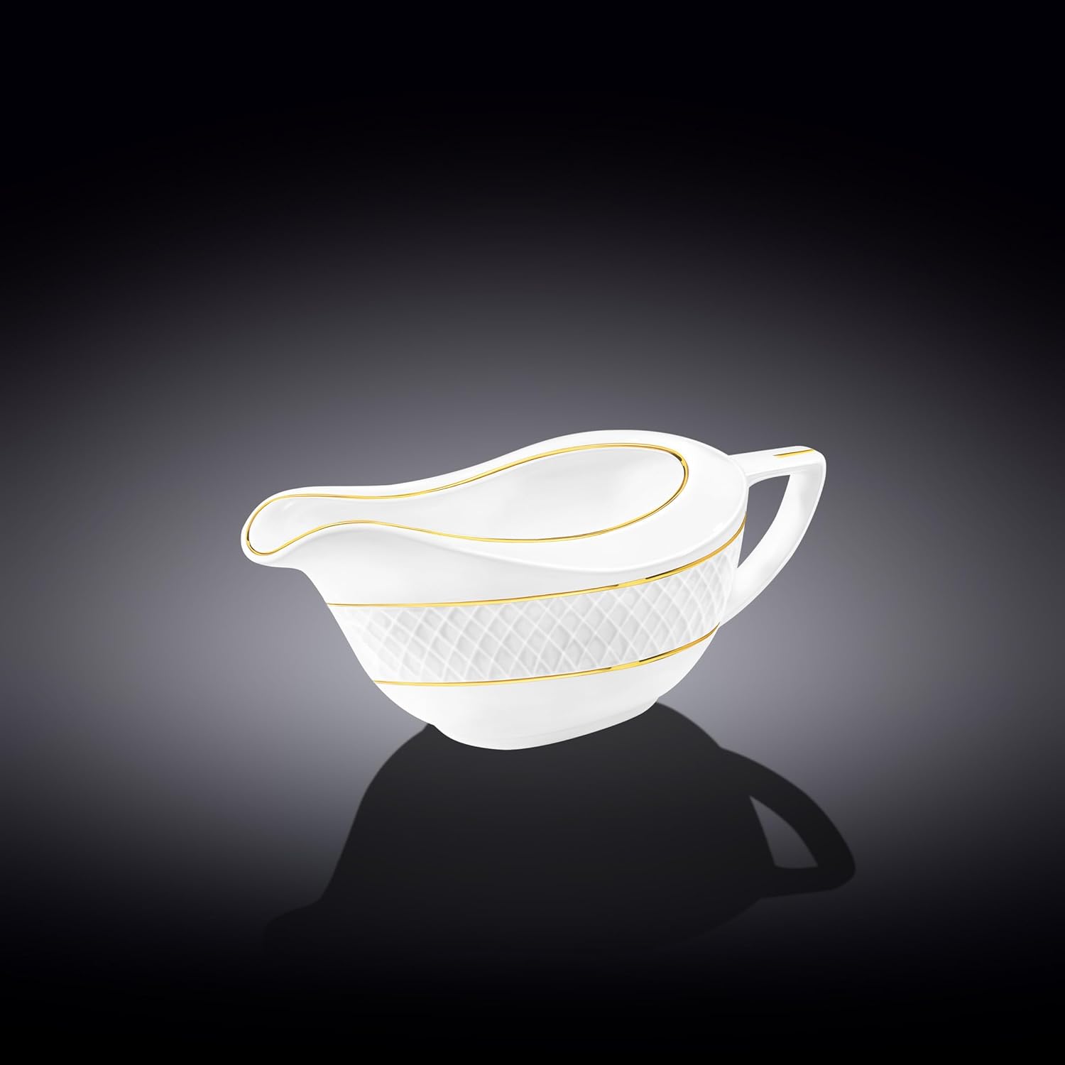 Die Wilmax Sauciere aus weißem Porzellan mit Goldrand ist ein Must-have für besondere Anlässe. Mit ihrem Fassungsvermögen von 230 ml ist sie ideal für Saucen, Dressings oder Dips.