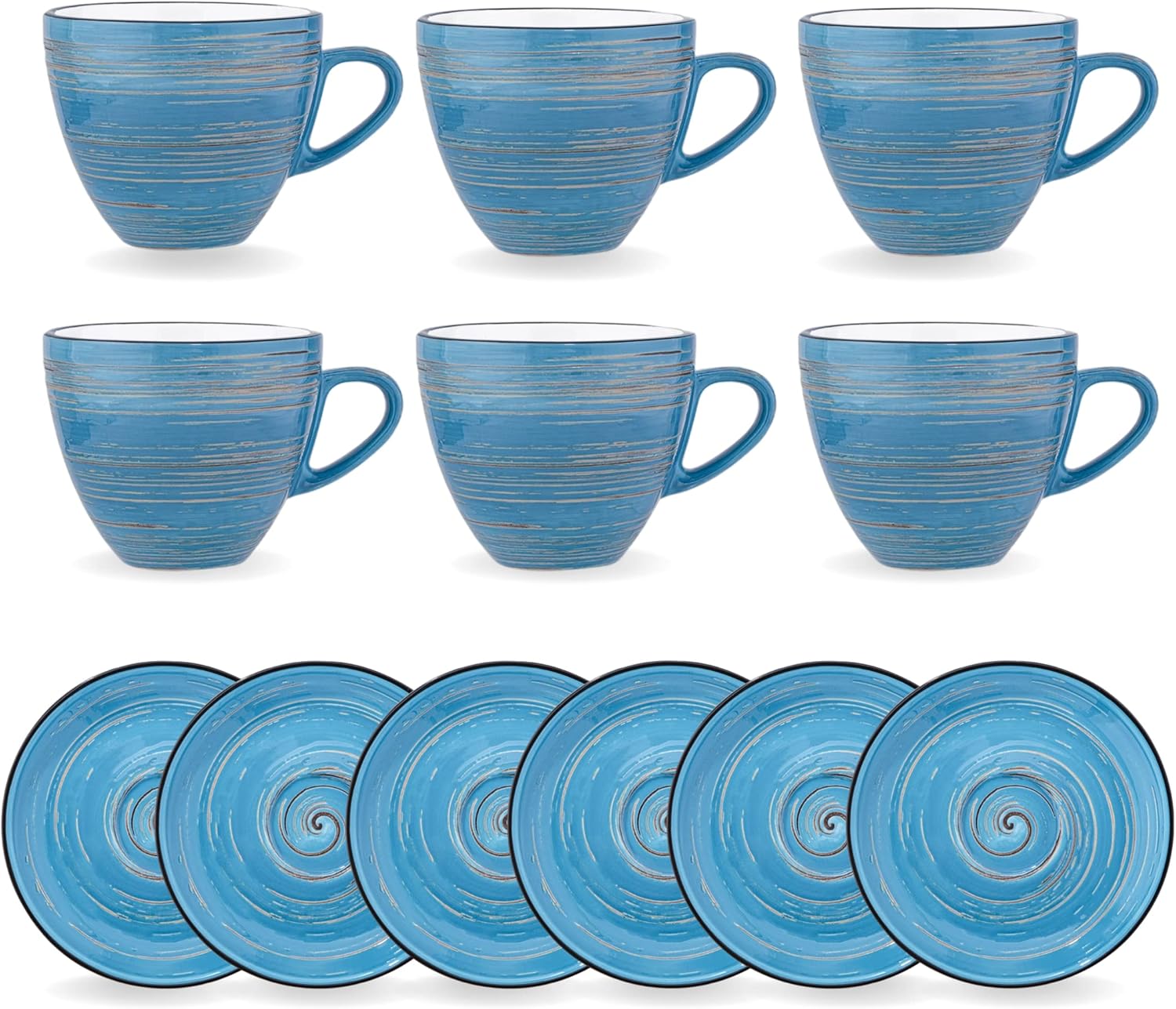 Die handgefertigte Spiral-Kollektion zeichnet sich durch ein modernes, farbenfrohes Design aus. Jede Tasse und Untertasse ist ein Unikat und überzeugt durch hochwertige Verarbeitung. Das Set ist spülmaschinen-, mikrowellen- und ofenfest und eignet sich sowohl für den täglichen Gebrauch als auch für besondere Anlässe.