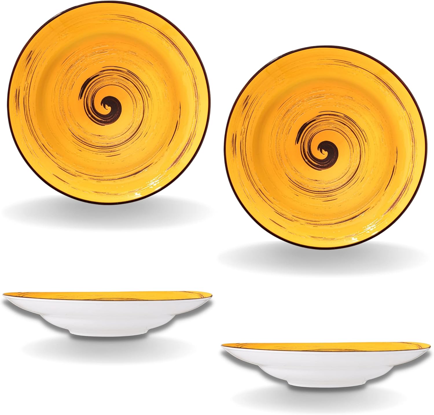 Der Wilmax Tiefe Porzellanteller besticht durch seine leuchtend gelbe Farbe und hochwertige Verarbeitung. Mit einem Durchmesser von 25,5 cm und einer Kapazität von 350 ml eignet er sich hervorragend für Suppen, Salate und andere Gerichte.
