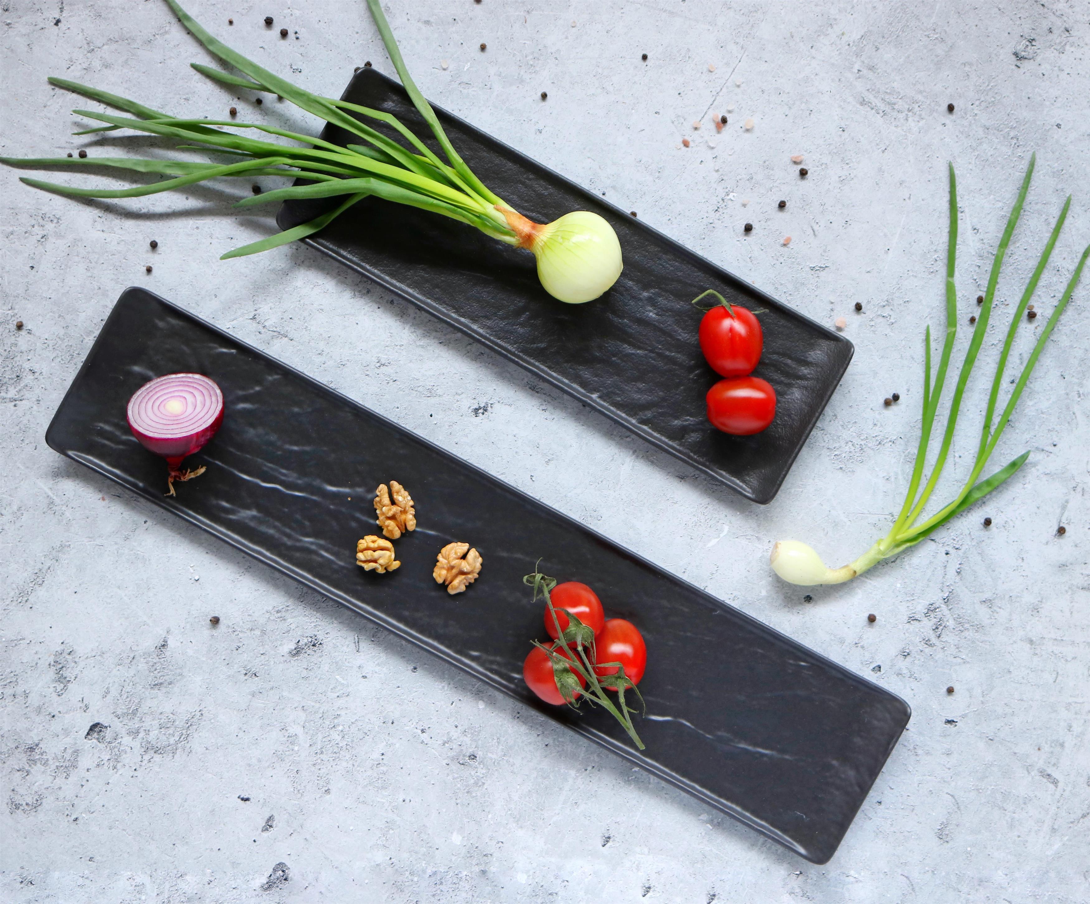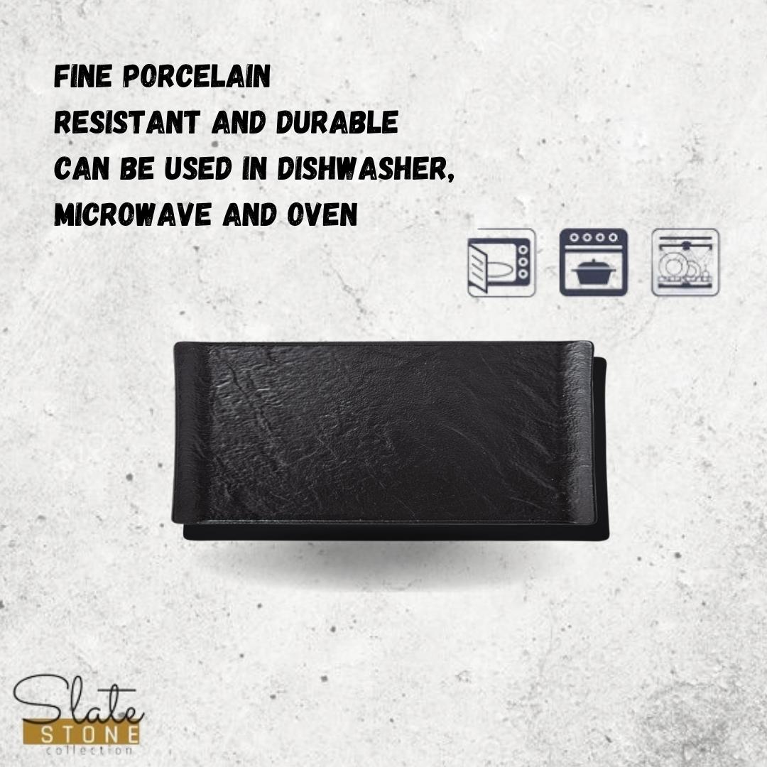 Gefertigt aus feinem Porzellan, eignen sich die Schalen ideal für Vorspeisen, Desserts oder Beilagen. Ihre schwarze, schieferähnliche Optik verleiht jeder Mahlzeit einen eleganten, modernen Touch. Diese Schalen sind perfekt für den Alltag, besondere Anlässe oder professionelle Gastronomie geeignet.