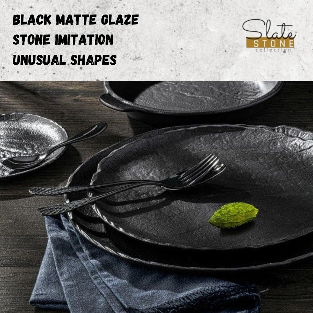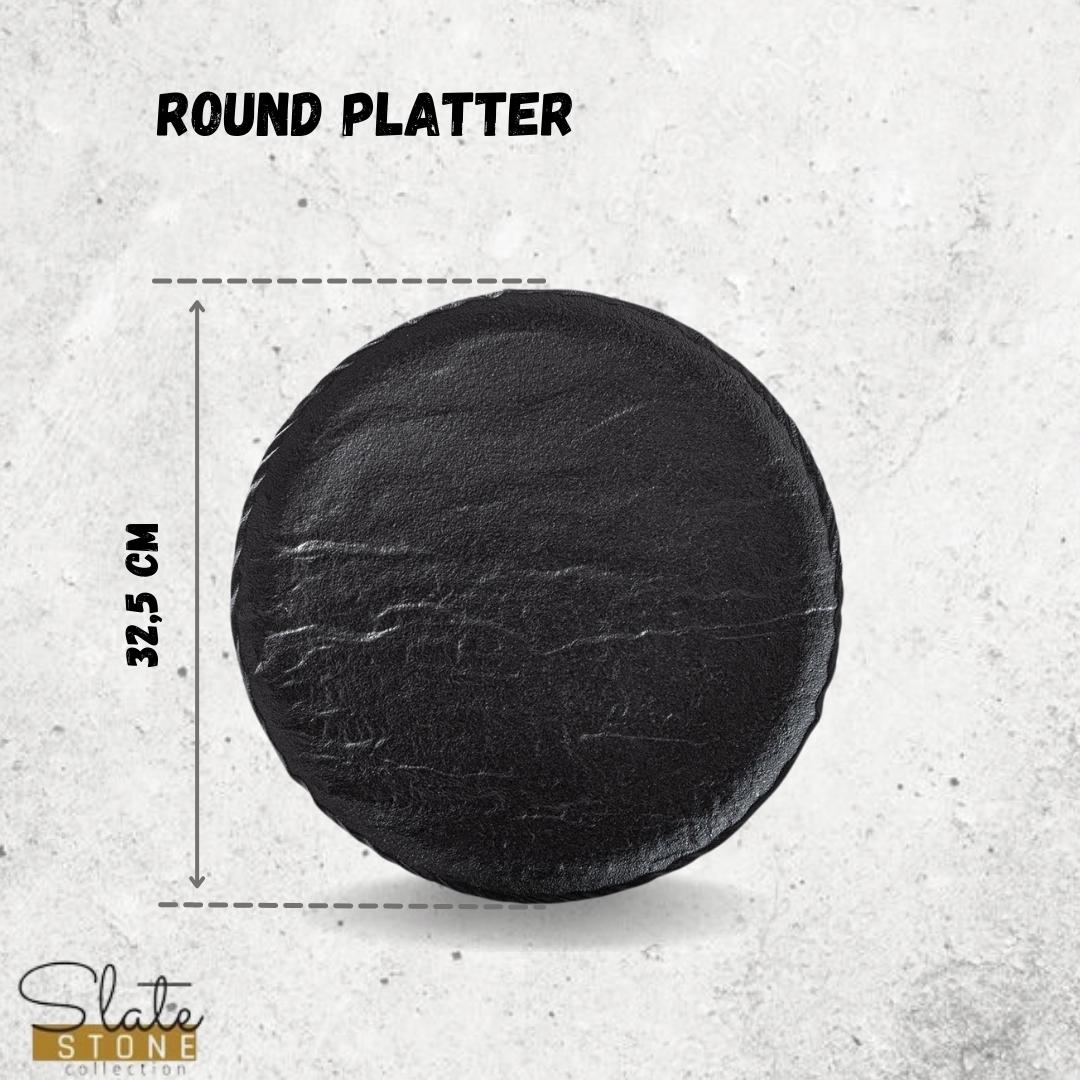 Die runde Form und die schwarze SlateStone Optik sorgen für eine elegante und moderne Präsentation und passen zu klassischen wie modernen Tischdekorationen.