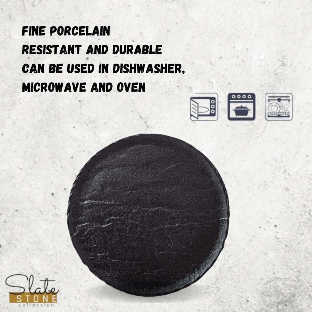 Der Wilmax runde Teller aus der SlateStone Kollektion ist ideal für Hauptgerichte, Vorspeisen, Desserts und stilvolle Speisenpräsentationen. Er verbindet großzügige Größe mit eleganter Optik und eignet sich für Zuhause sowie den professionellen Einsatz.