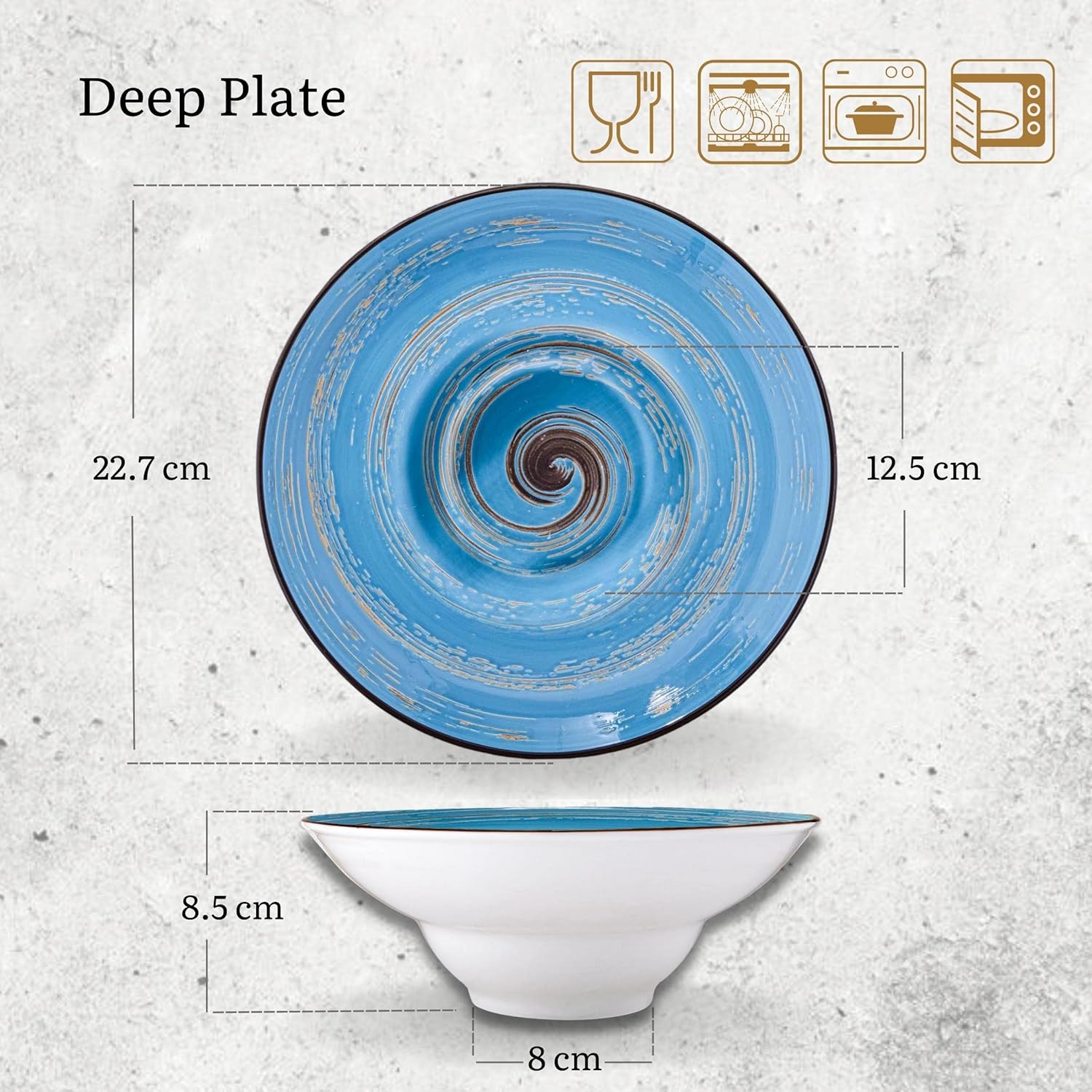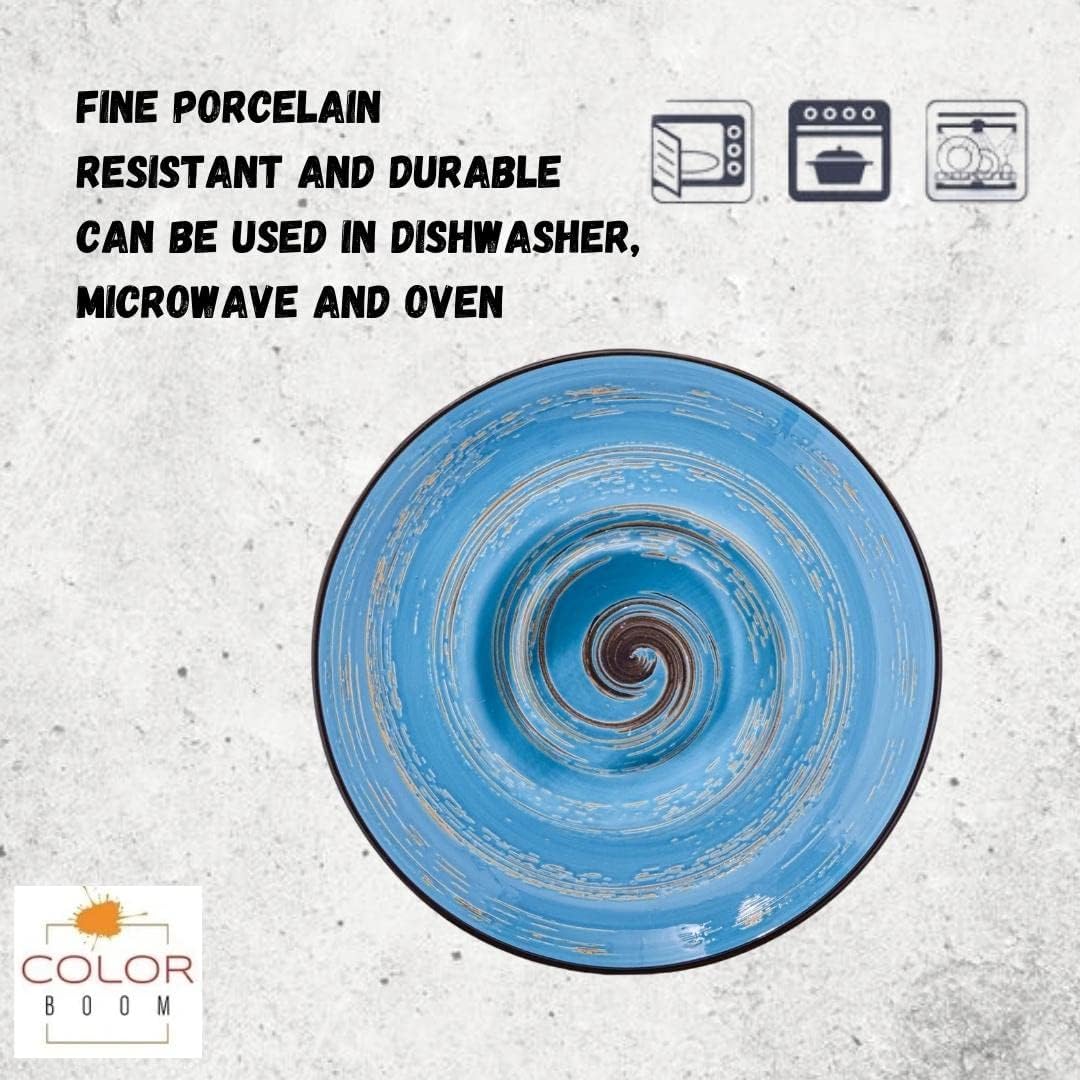 Die tiefe Porzellanplatte WL-669623/A2 aus der Wilmax ColorBoom Kollektion verbindet modernes Design mit hoher Funktionalität. Die leuchtend blaue Spiralglasur verleiht jedem gedeckten Tisch eine besondere Note – perfekt für den Alltag sowie für festliche Anlässe.