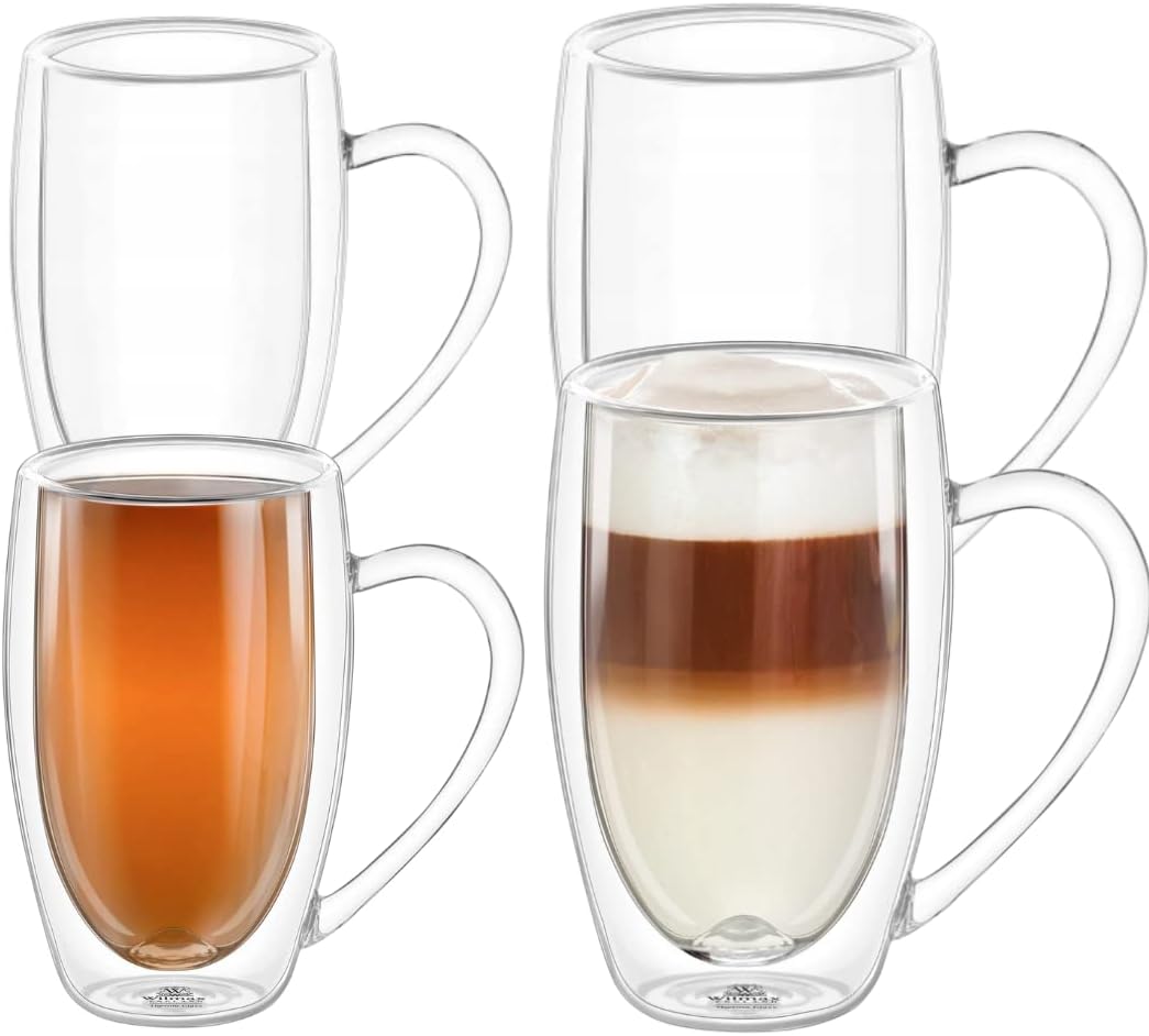 Dieses 4er-Set doppelwandiger Glasbecher von Wilmax kombiniert modernes Design mit praktischer Funktionalität. Perfekt für Kaffeeliebhaber, Teetrinker oder als stilvolles Geschenk.