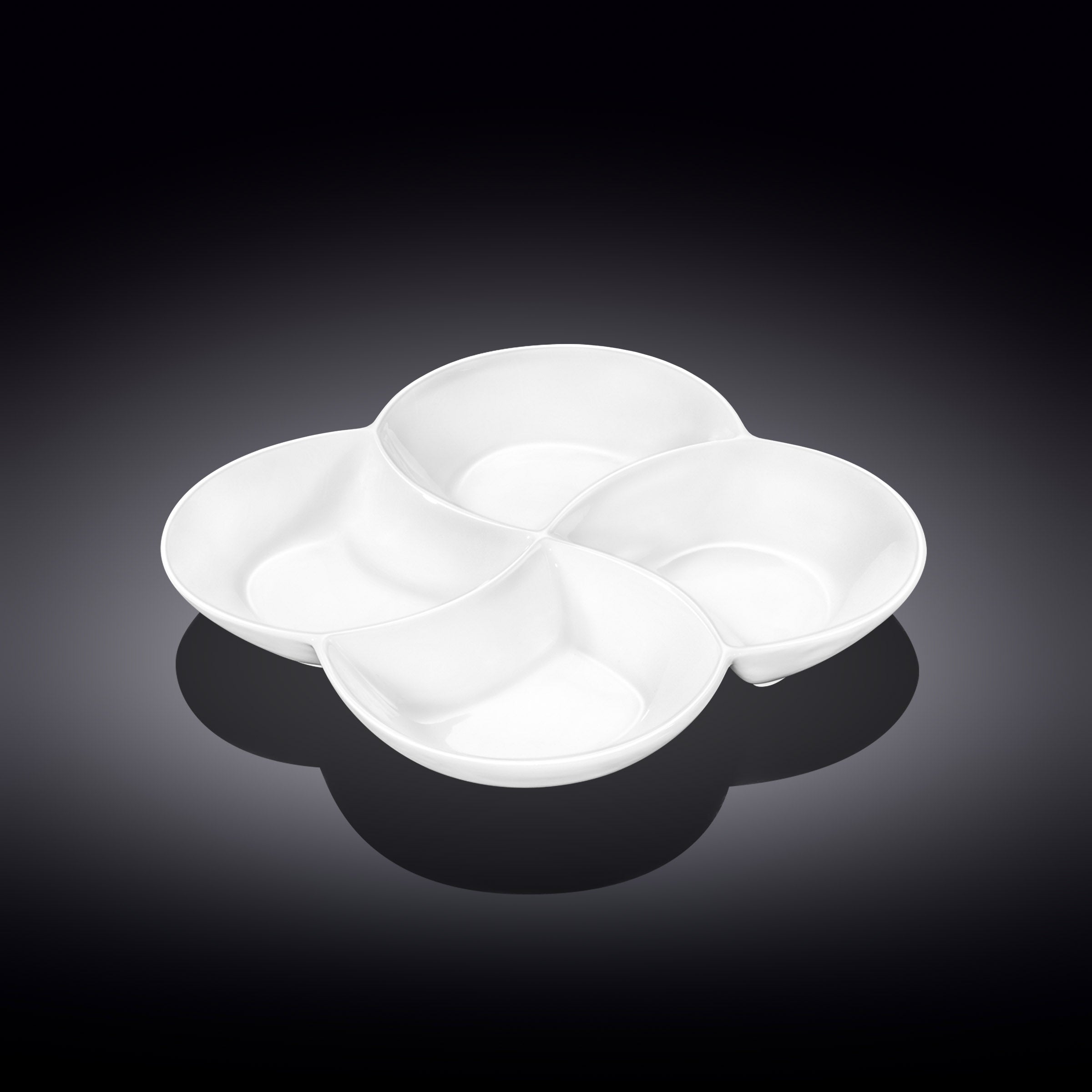 Die Wilmax geteilte Schale WL-992649/A kombiniert praktisches Design mit ästhetischer Eleganz. Mit ihren vier gleichmäßig aufgeteilten Fächern ermöglicht sie die ansprechende Präsentation verschiedener Snacks, Dips oder Vorspeisen, ohne dass sich die Aromen vermischen.