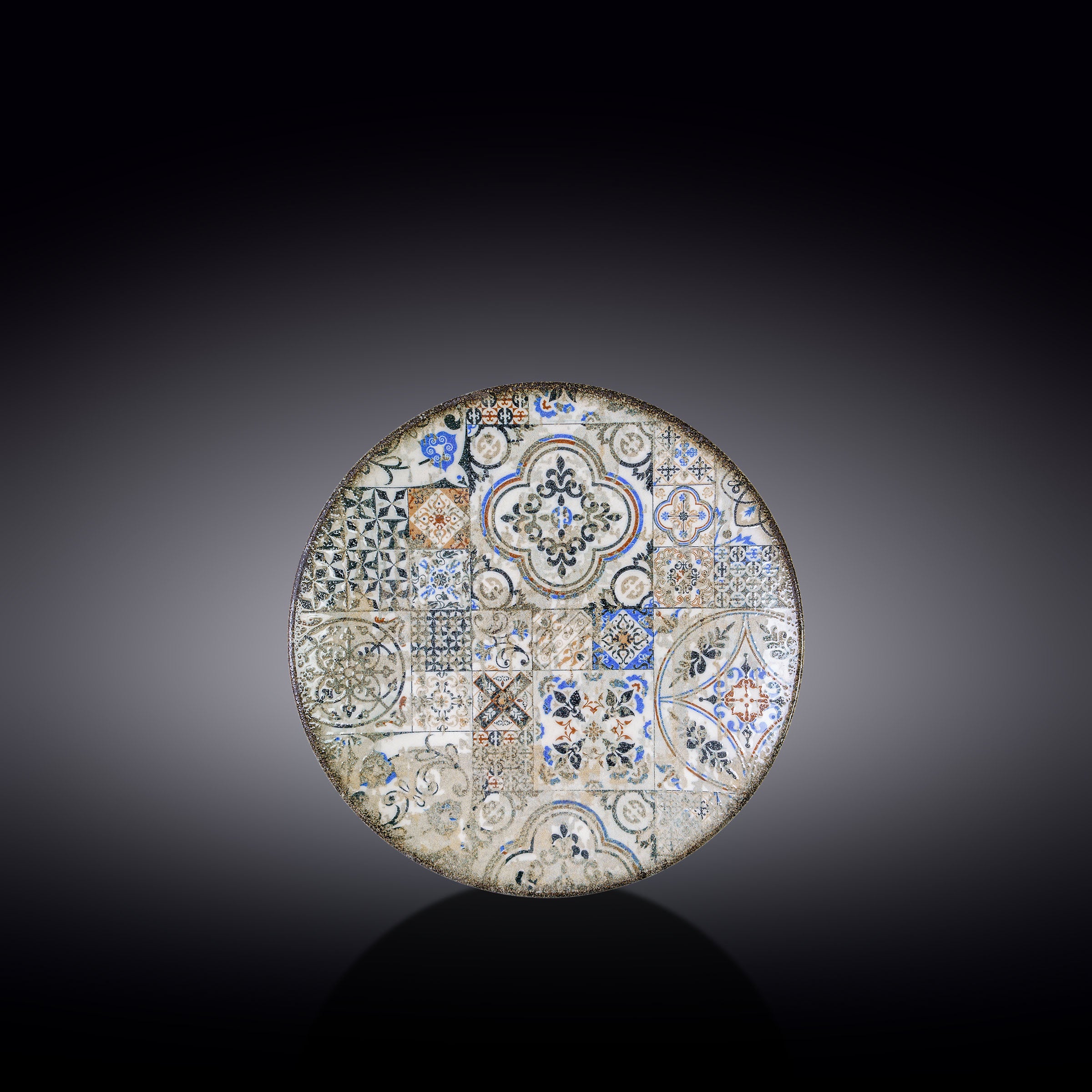 Gefertigt aus hochwertigem Porzellan, zeichnet sich dieser Teller durch seine Langlebigkeit und elegante Optik aus. Die glatte Oberfläche mit dem Vintage-Mosaikmuster verleiht Ihrer Tischdekoration eine besondere Note.