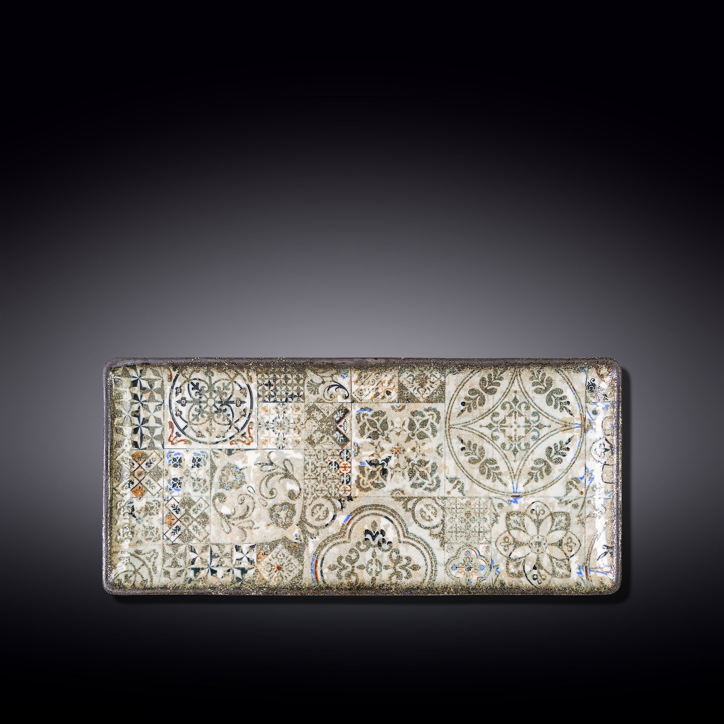 Die Wilmax Rechteckige Servierplatte WL-671353/A vereint funktionale Eleganz mit kunstvollem Design. Gefertigt aus feinem Porzellan, begeistert diese Platte mit einem einzigartigen Mosaikmuster, das mediterrane und klassische Elemente kombiniert. Mit einer Größe von 33 x 15 cm ist sie ideal für das stilvolle Servieren von Vorspeisen, Tapas, Desserts oder anderen Speisen.